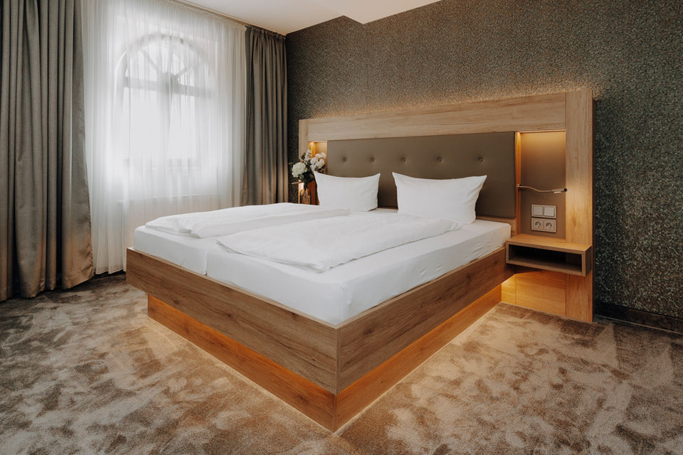 Das moderne Qualitätsinterieur sorgt im Zusammenspiel mit Stilelementen des Barock und urbanen Mustern für eine entspannende Atmosphäre und angenehmen Komfort. Ein Teil unserer Zimmer befindet sich in dem 50 m vom Hauptgebäude entfernten Gästehaus.